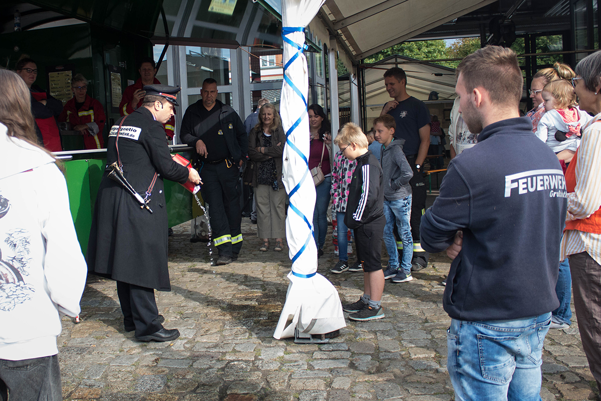 Am Samstagabend sorgte die Partyband „SoWieSo“ mit Imitationen und Covern für Stimmung in der Fahrzeughalle und wurde im Anschluss mit einem gewaltigen Feuerwerk abgerundet.